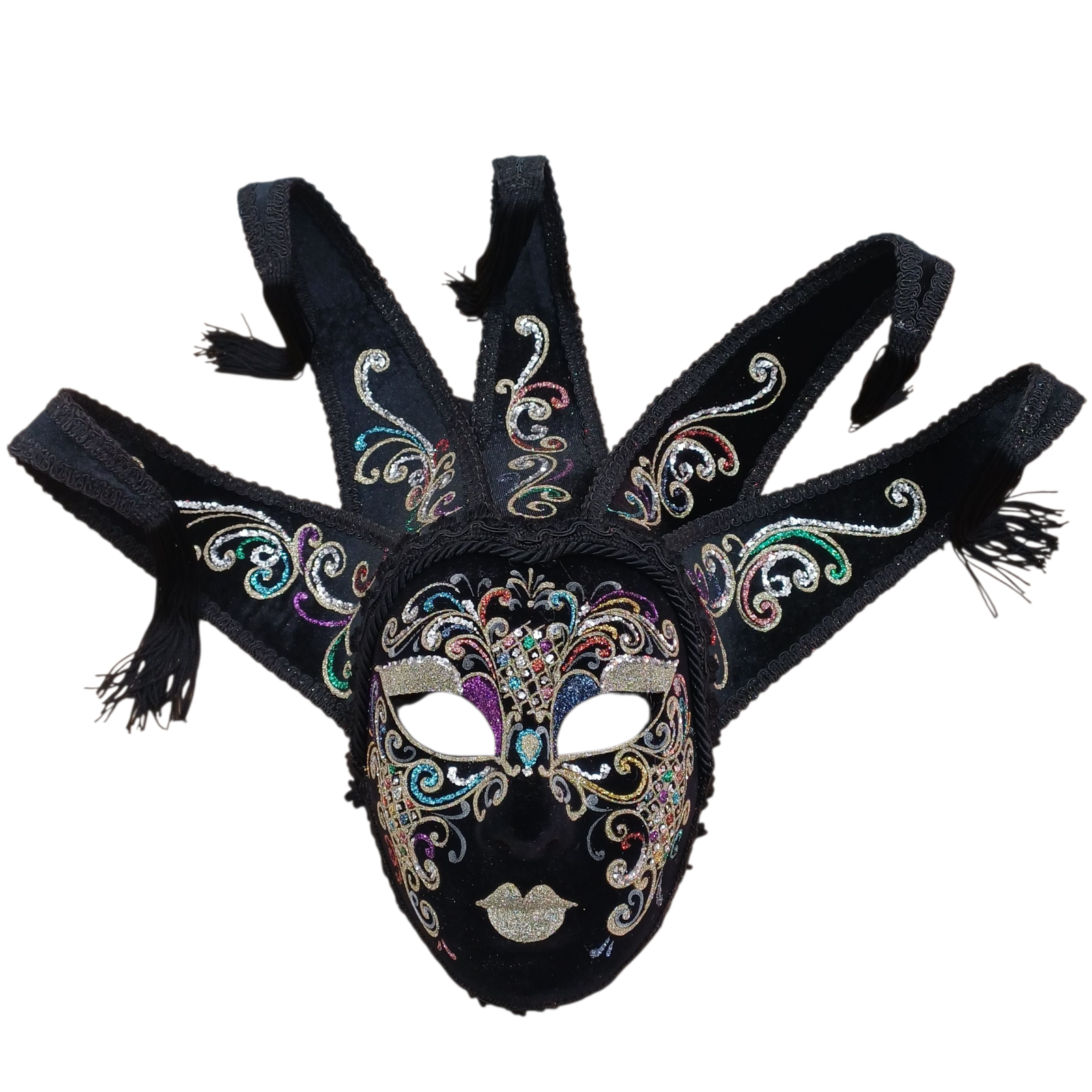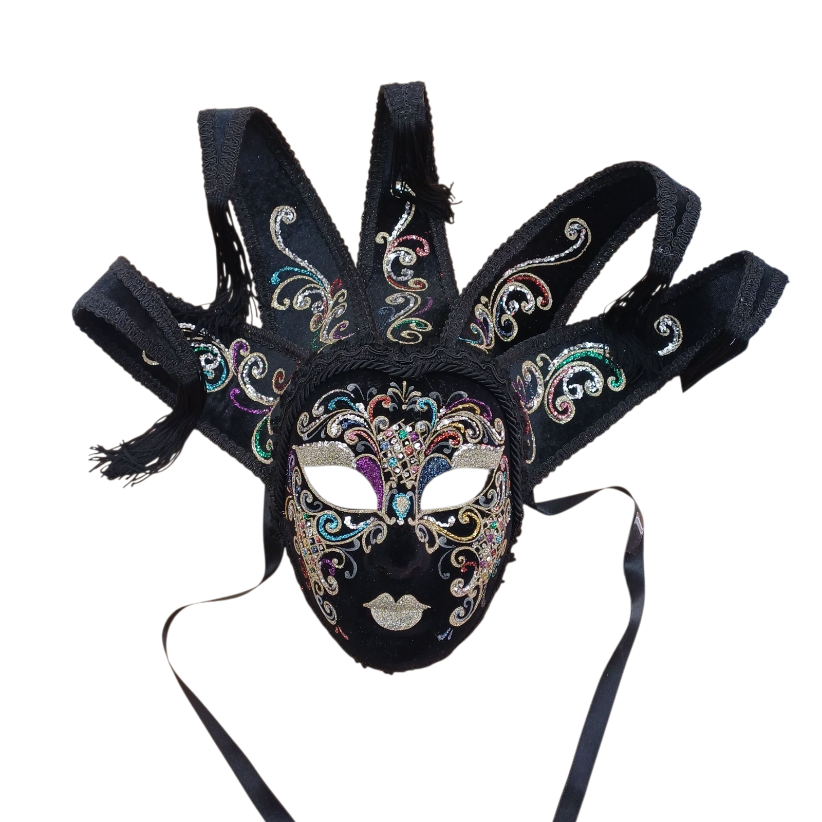 Αυθεντική μάσκα Βενετίας σε μαύρο χρώμα με ασημί λεπτομέρειες και φούντες