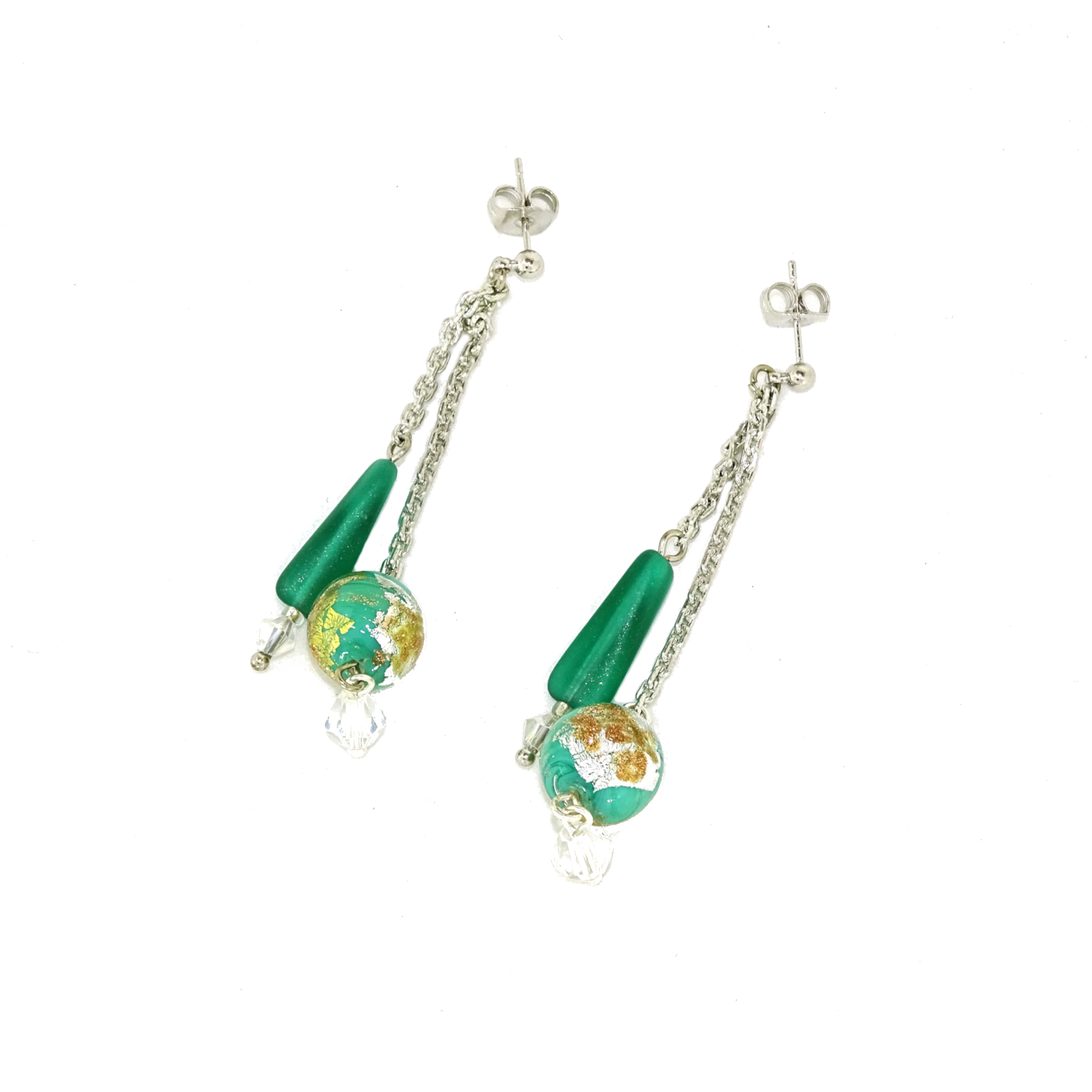 Σκουλαρίκια από αυθεντικό γυαλί Mουράνο σε πράσινο χρώμα.